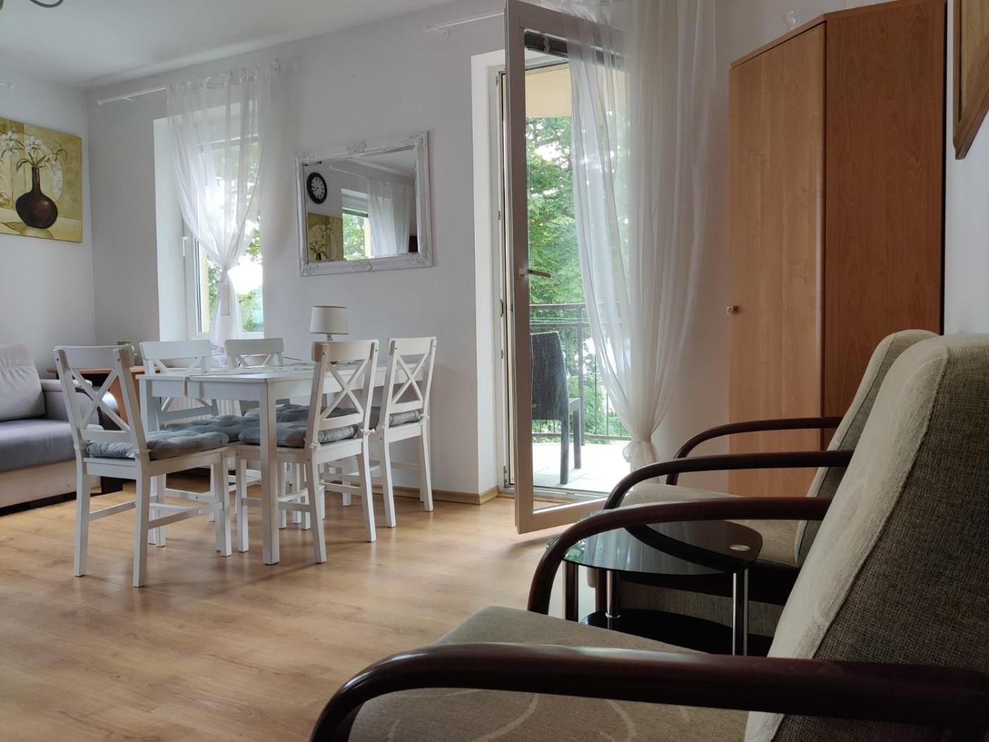 Apartament. This spacious apartment includes 1 living room, 2 separate bedrooms and 1 bathroom with a shower. Meals can be prepared in the kitchen, which has a stovetop, a refrigerator, kitchenware and an electric kettle. Boasting a balcony with sea views, this apartment also offers a washing machine and a flat-screen TV. The unit has 3 beds. Apartament - 5 osobowy. Powierzchnia pokoju ok.: 66 mkw.