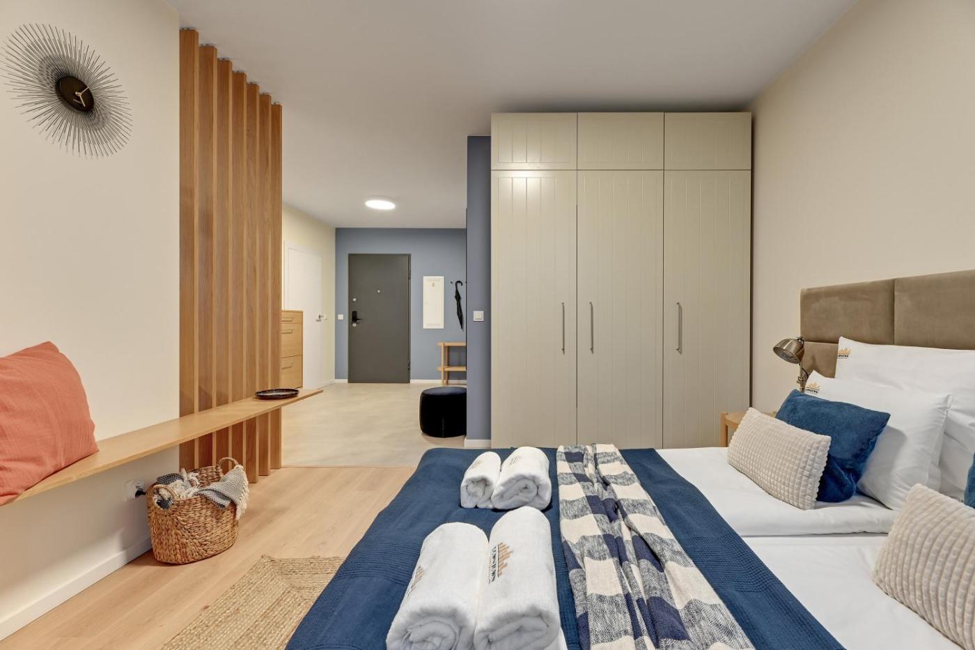 Studio typu Deluxe z łóżkiem typu king-size. The spacious studio has a private bathroom, a washing machine, a private entrance, as well as a seating area with a flat-screen TV. The well-fitted kitchenette features a stovetop, a refrigerator, a dishwasher and kitchenware. The studio features a tea and coffee maker, a dining area, a wardrobe, a sofa, as well as a TV. The unit has 2 beds. Studio - 5 osobowy. Powierzchnia pokoju ok.: 58 mkw.