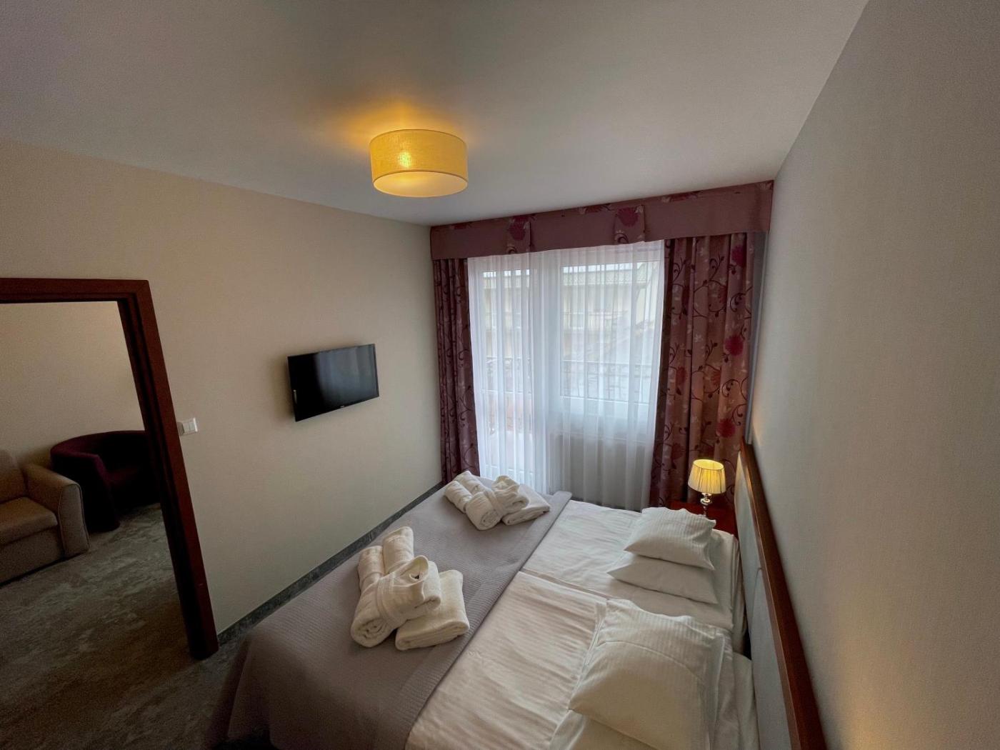 Pokój Dwuosobowy typu Superior. The spacious double room offers an electric kettle, a tiled floor, as well as a private bathroom featuring a shower and a hairdryer. Boasting a balcony, this double room also provides a carpeted floor and a flat-screen TV. The unit offers 1 bed. Pokój Dwuosobowy - 2 osobowy. Powierzchnia pokoju ok.: 26 mkw. ;