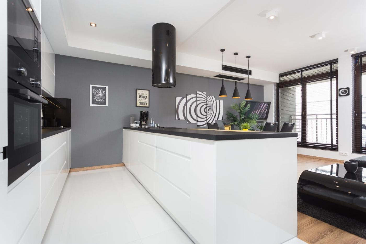 Apartament typu Penthouse. Featuring a private entrance, this air-conditioned apartment consists of 1 living room, 1 separate bedroom and 1 bathroom with a bath and a shower. Guests can make meals in the kitchen that is equipped with a stovetop, a refrigerator, a dishwasher and kitchenware. Boasting a balcony with ancourtyard view, this apartment also provides a washing machine and a flat-screen TV with streaming services. The unit offers 2 beds. Apartament - 5 osobowy. Powierzchnia pokoju ok.: 55 mkw. ;