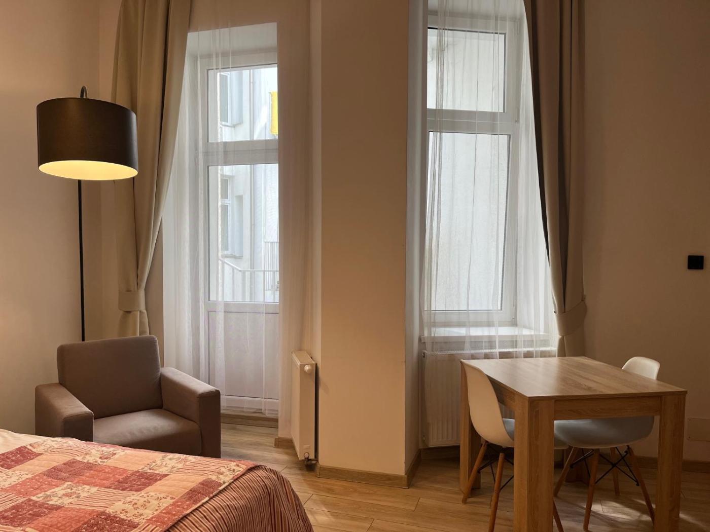 Studio z balkonem. Posiłki można przygotowywać we w pełni wyposażonej kuchni z płytą kuchenną, lodówką, kuchenką mikrofalową i przyborami kuchennymi. To studio z oddzielnym wejściem i dźwiękoszczelnymi ścianami dysponuje balkonem z widokiem na wewnętrzny dziedziniec oraz łazienką z kabiną prysznicową. Do dyspozycji gości jest 1 łóżko. Studio - 2 osobowy. Powierzchnia pokoju ok.: 20 mkw. ;