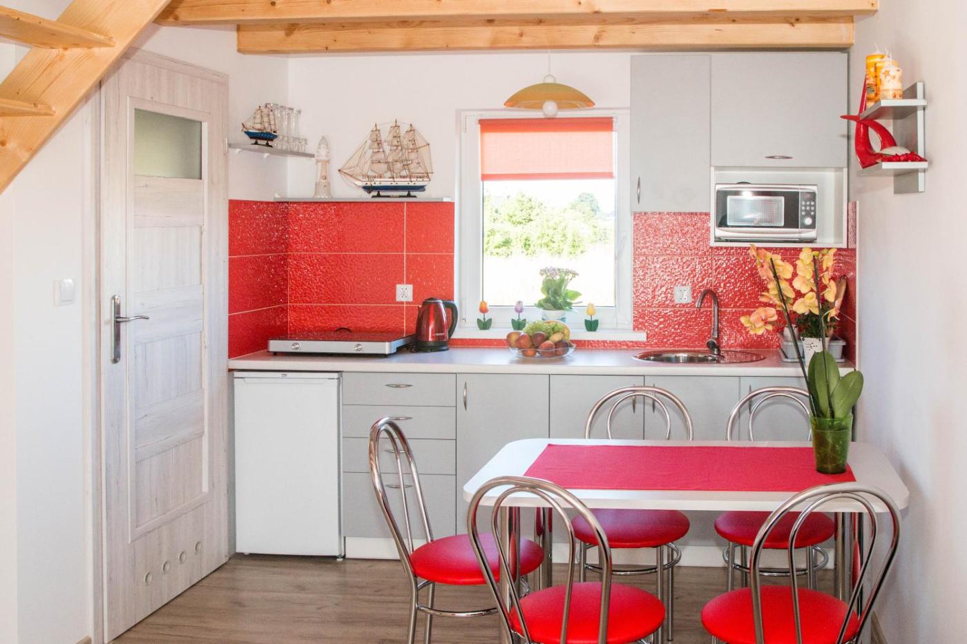 Dom z 2 sypialniami. The holiday homes kitchenette, which features kitchenware, is available for cooking and storing food. The holiday home has a terrace. The unit has 5 beds. Dom wakacyjny - 8 osobowy. Powierzchnia pokoju ok.: 50 mkw.
