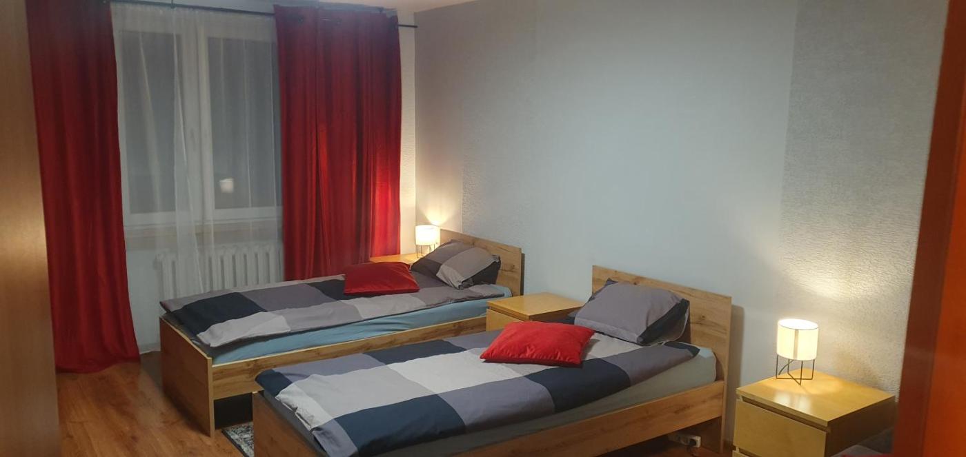 Apartament z 2 sypialniami. This apartment comprises 2 bedrooms, kitchen and 1 bathroom with a bath or a shower. Meals can be prepared in the well-fitted kitchen, which is equipped with a stovetop, a refrigerator, an oven and a microwave. Featuring a balcony with a quiet street view, this apartment also provides a washing machine and a flat-screen TV with cable channels. The unit offers 5 beds. Apartament - 5 osobowy. Powierzchnia pokoju ok.: 51 mkw. ;